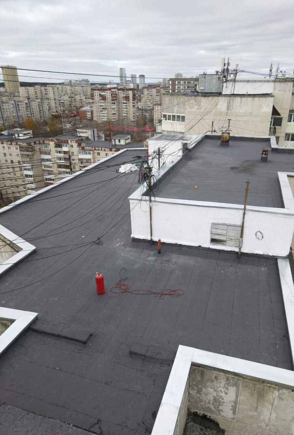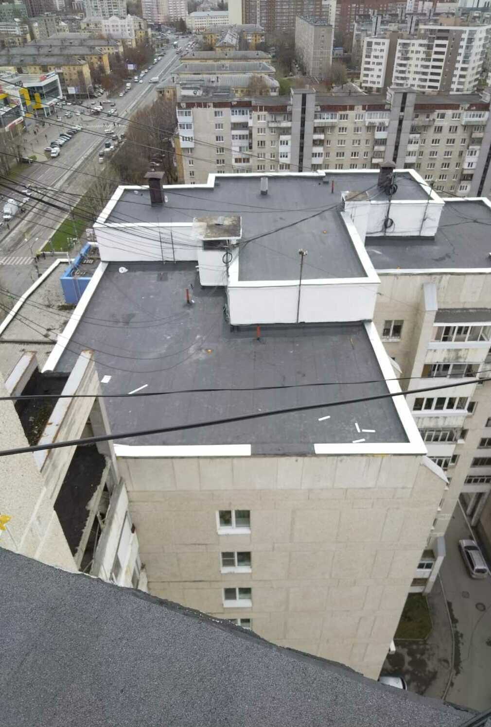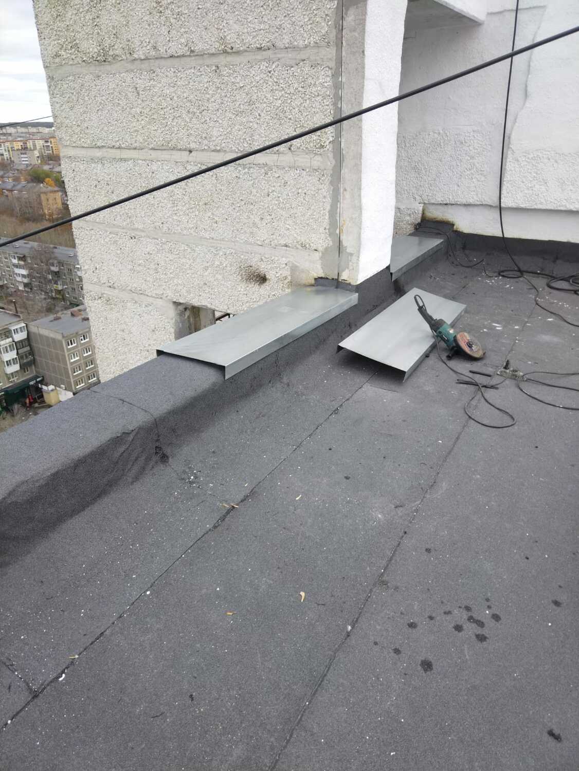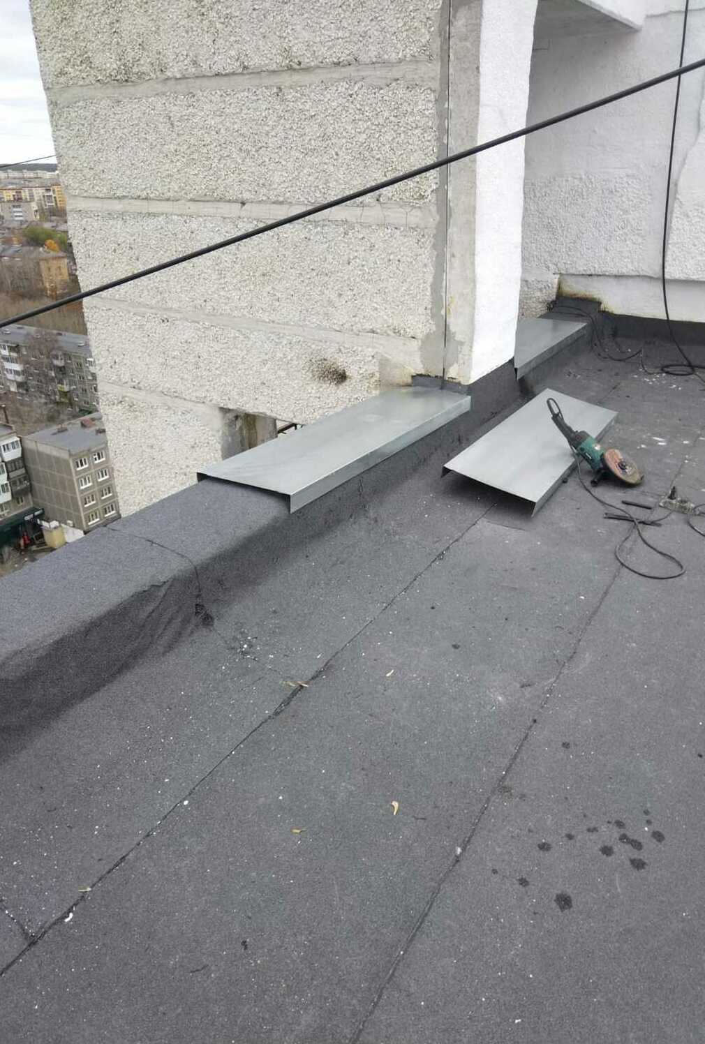 Подъезд 5: - восстановление парапетов Подъезд 2: - наплавление усиливающего слоя - наплавление первого слоя.