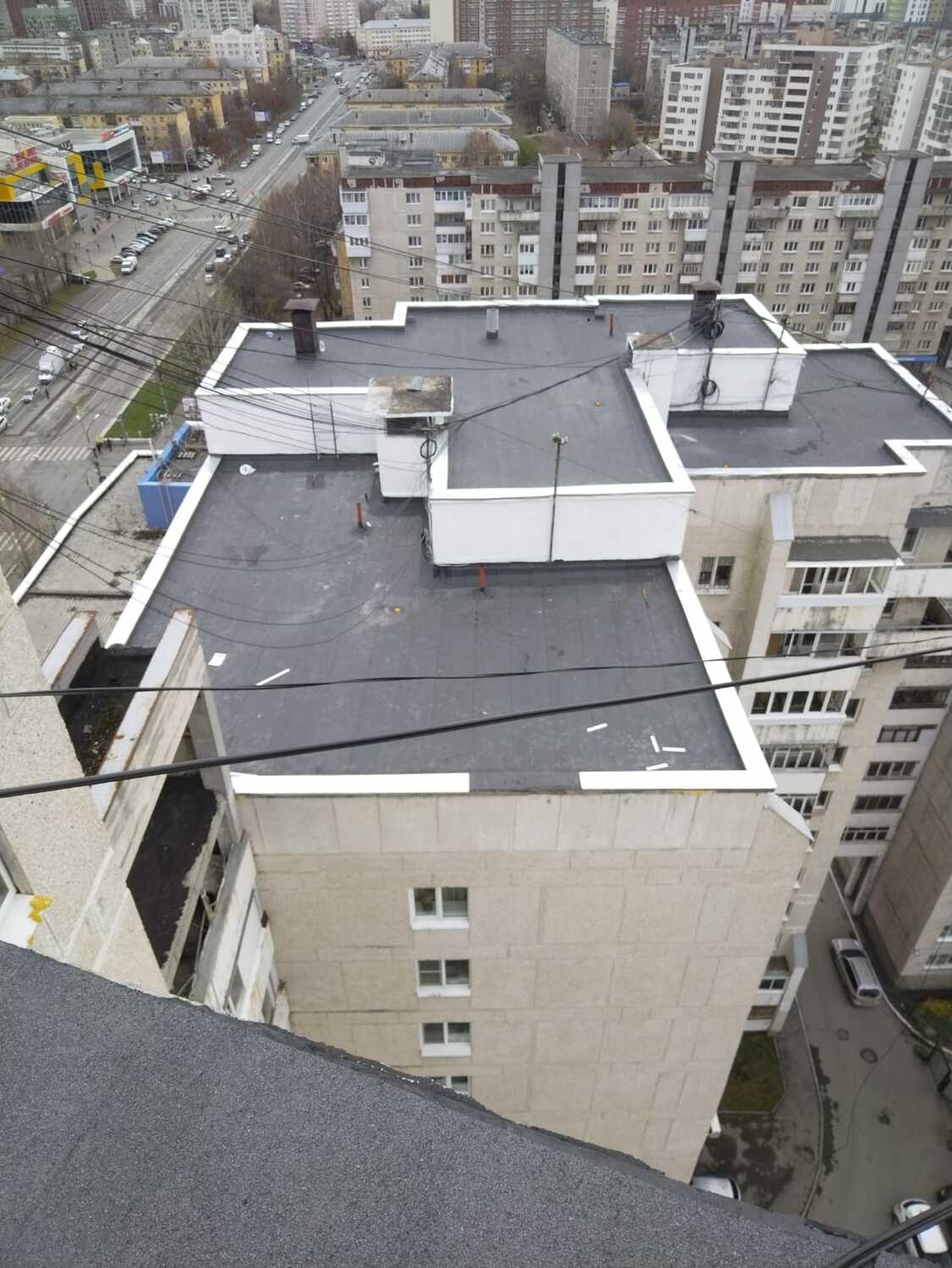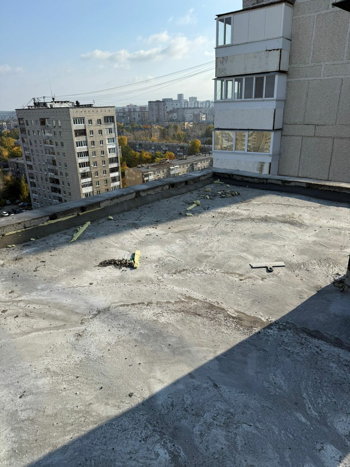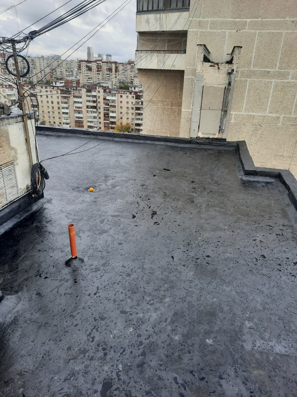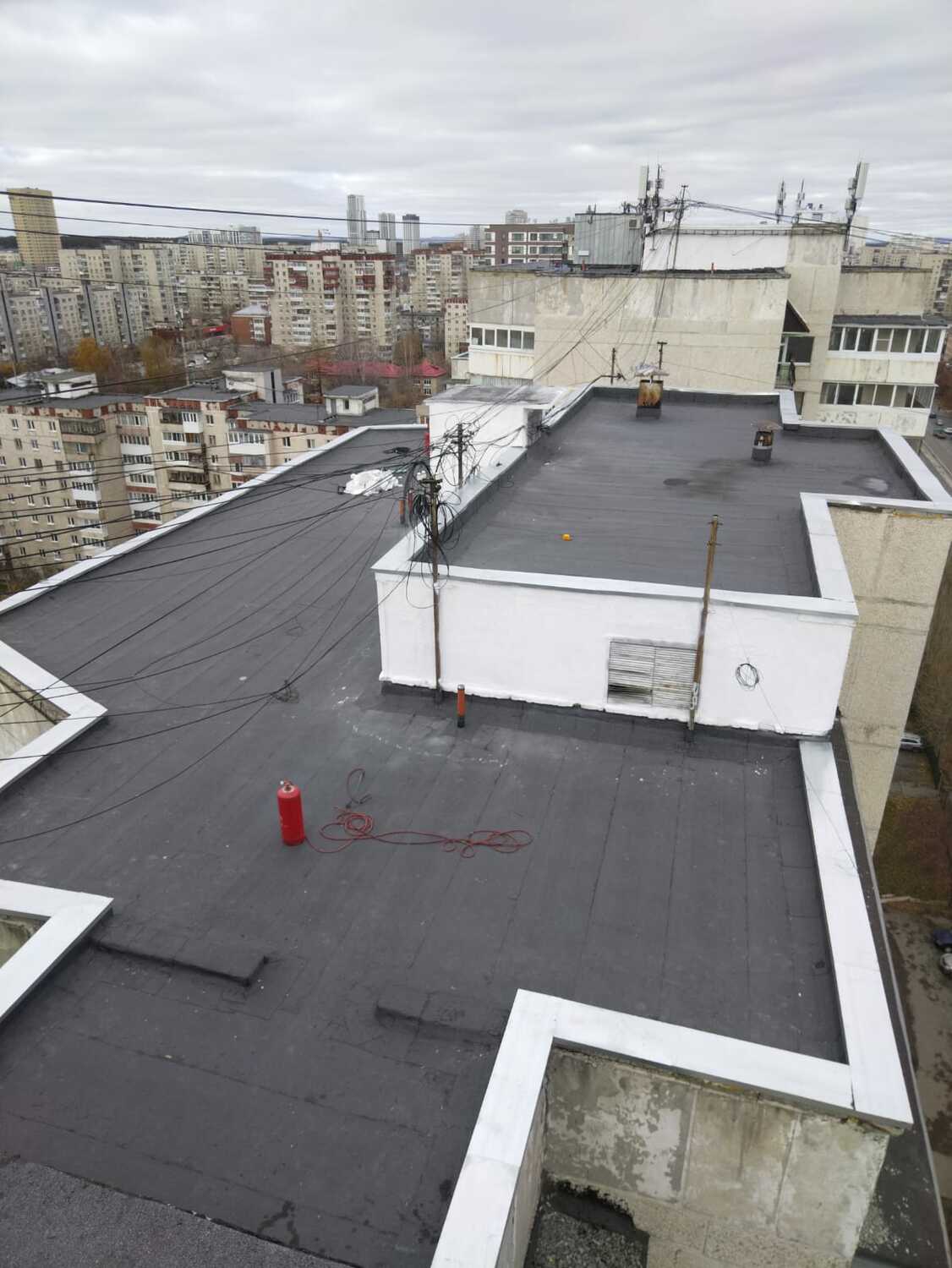 Подъезд 5: - восстановление парапетов Подъезд 2: - наплавление усиливающего слоя - наплавление первого слоя.
